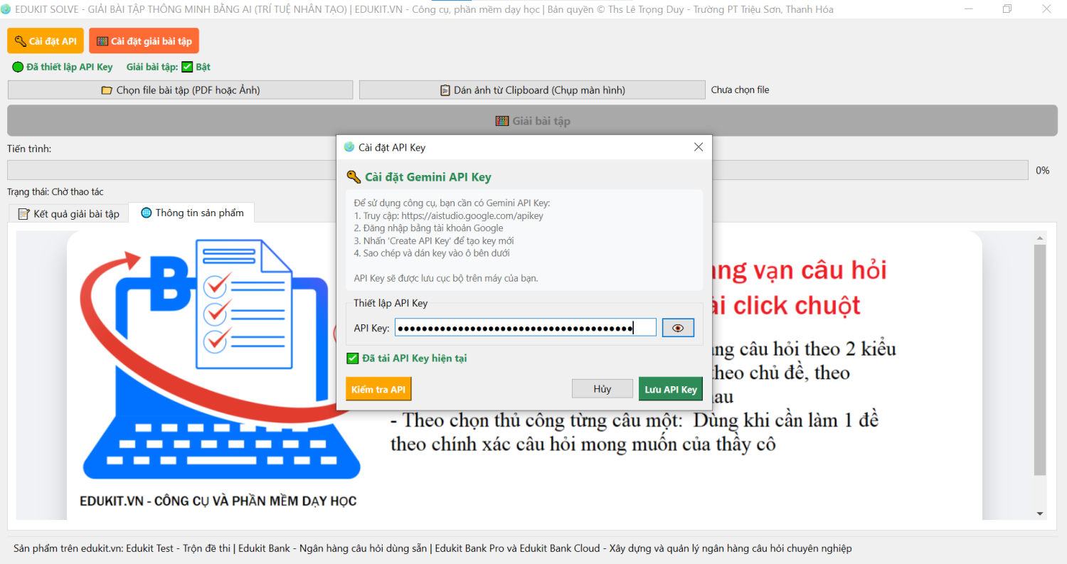 Yêu cầu cài đặt KEY API GEMINI - AI trí tuệ nhân tạo của google trước khi sử dụng